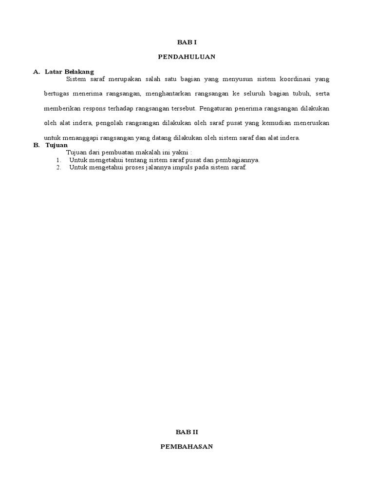 Makalah Sistem Saraf - Makalah Sistem Saraf Dan Indera Nangkring Net. Sistem saraf merupakan suatu sistem yang mengatur kerja semua sistem organ agar dapat kami penulis membatasi masalah materi pembahasan makalah ini hanya pada sistem sarafbeserta. Pengertian sel saraf (neuron) : Makalah untuk memenuhi salah satu tugas mata kuliah fisiologi hewan yang dibimbing oleh haslindayusti agustina, s.si. Sistem saraf pusat (otak dan stb). Pengertian sistem saraf sistem saraf adalah sistem koordinasi (pengaturan tubuh) berupa penghantaran impul saraf ke susunan saraf pusat, pemrosesan impul saraf dan perintah untuk.